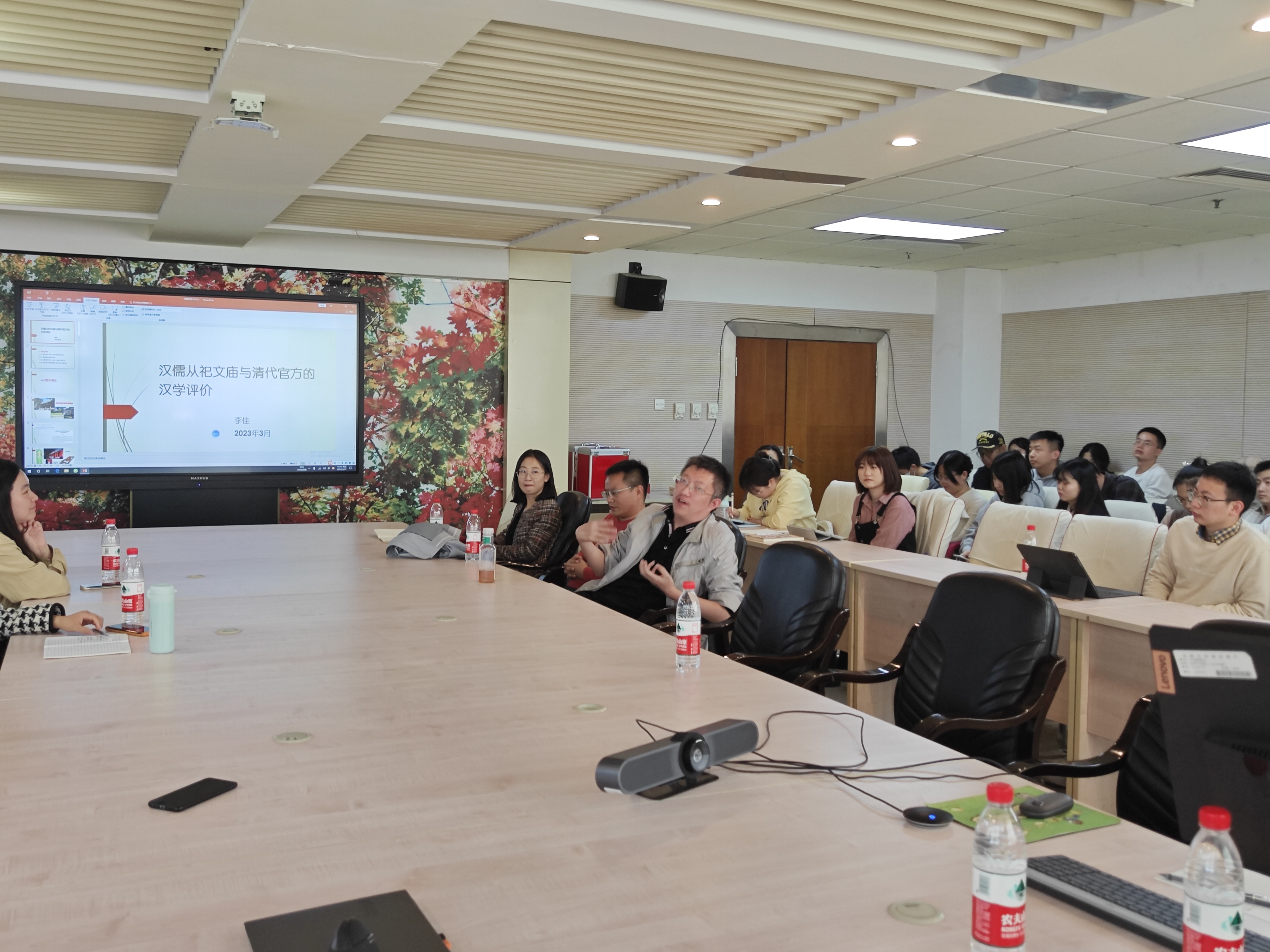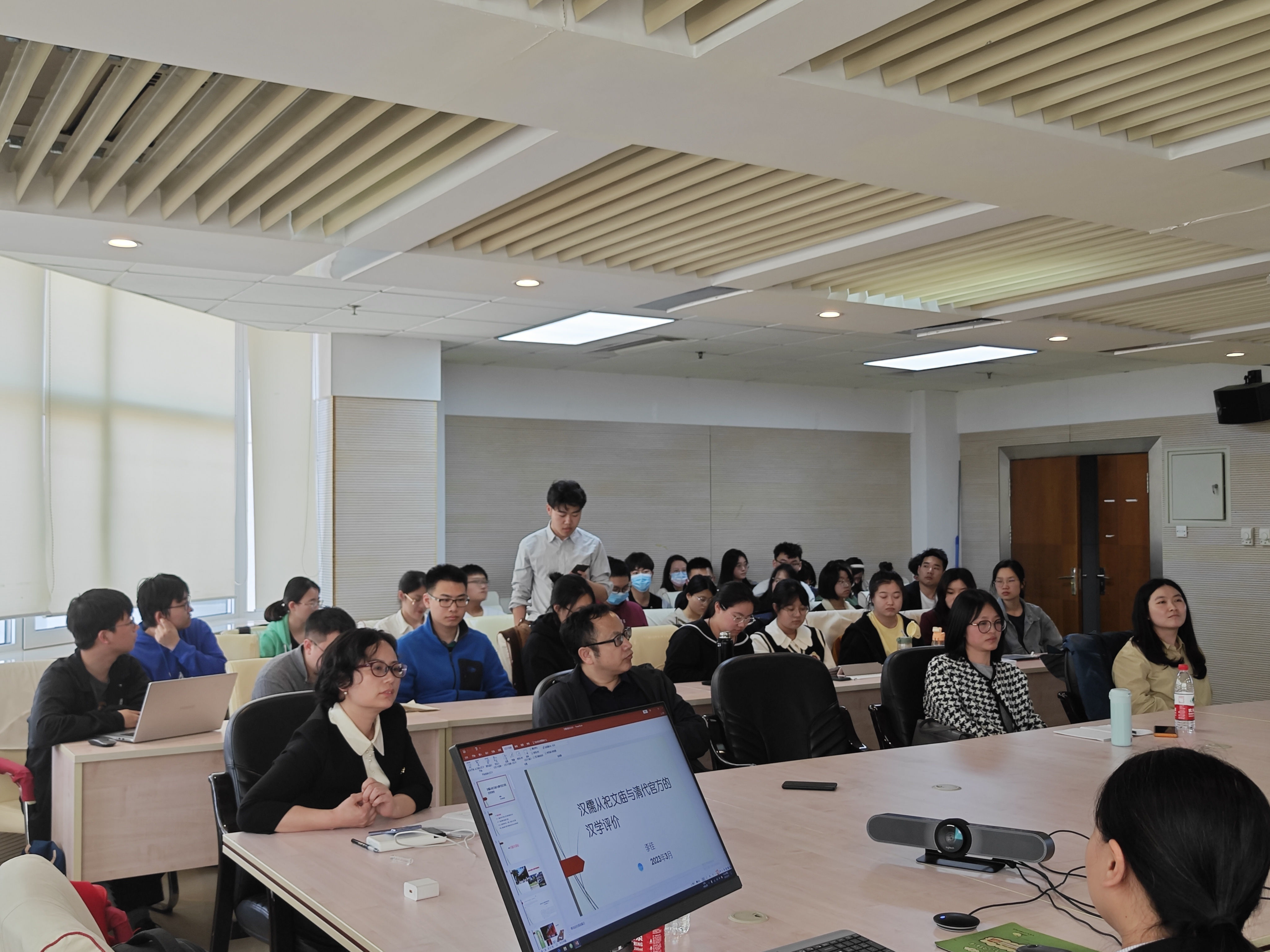 在讲座最后的互动环节中,针对现场老师、同学提出的问题,李佳老师进行了细致的解答,指出还可以从明清交替、清代汉学传承、今古文之争等维度进一步分析清代汉儒从祀文庙制度变动这一问题。最后,讲座在学生热烈的掌声中结束。