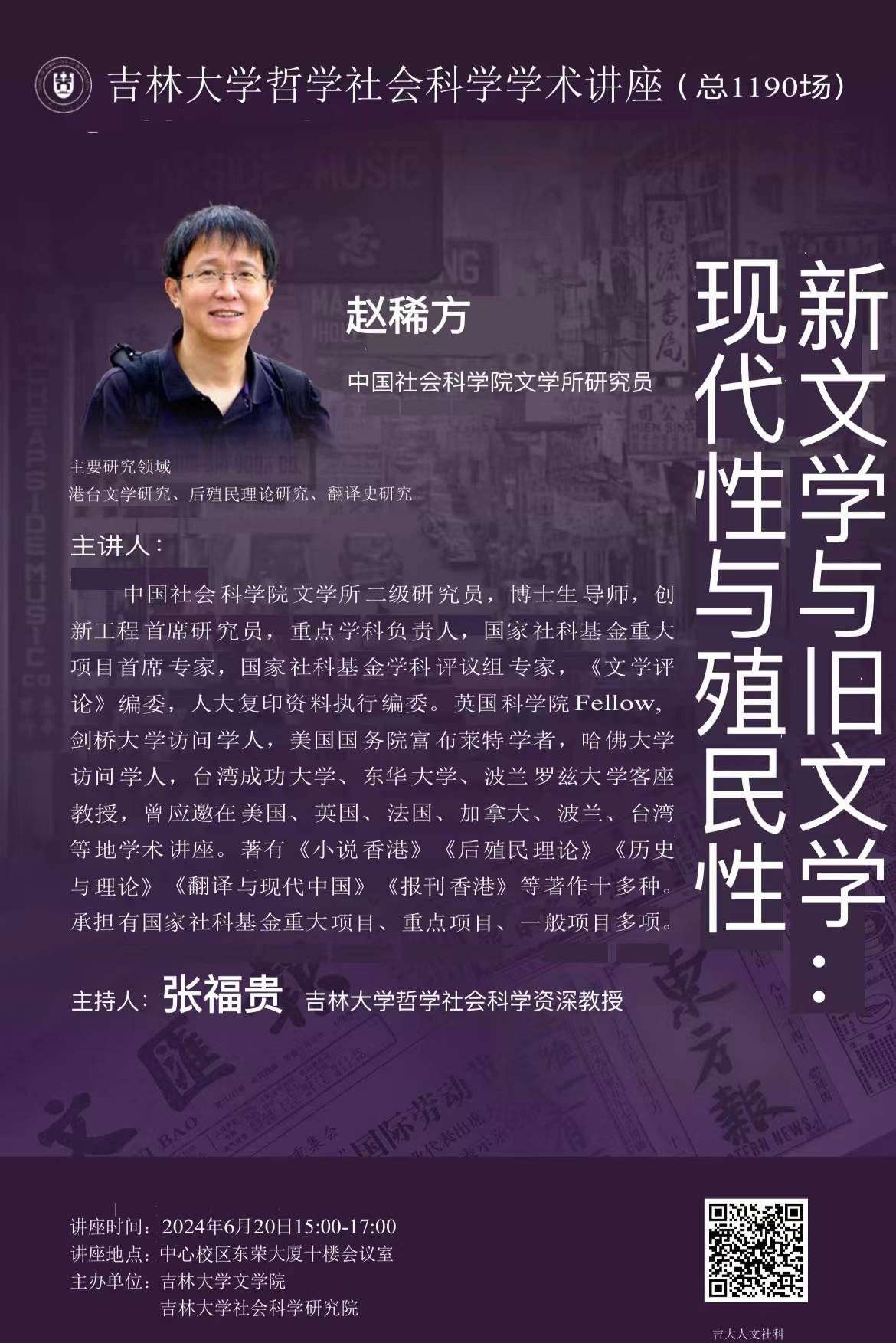 赵稀方,现为中国社会科学院文学所二级研究员,博士生导师,创新工程首席研究员,重点学科负责人,国家社科基金重大项目首席专家,国家社科基金学科评议组专家,《文学评论》编委,人大复印资料执行编委。英国科学院Fellow,剑桥大学访问学人,美国国务院富布莱特学者,哈佛大学访问学人,台湾成功大学、东华大学、波兰罗兹大学客座教授,曾应邀在美国、英国、法国、加拿大、波兰、台湾等地学术讲座。著有《小说香港》《后殖民理论》《历史与理论》《翻译与现代中国》《报刊香港》等著作十多种。承担有国家社科基金重大项目、重点项目、一般项目多项。