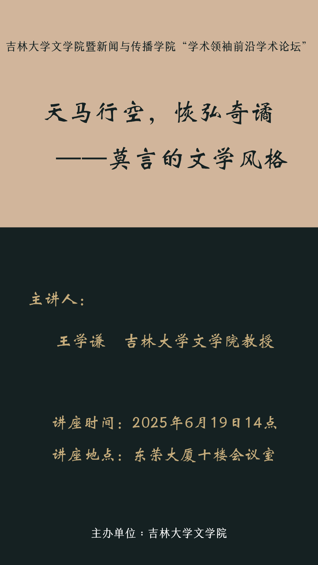 成人在线 暨新闻与传播学院“学术领袖前沿学术论坛”第三场:天马行空,恢弘奇谲——莫言的文学风格