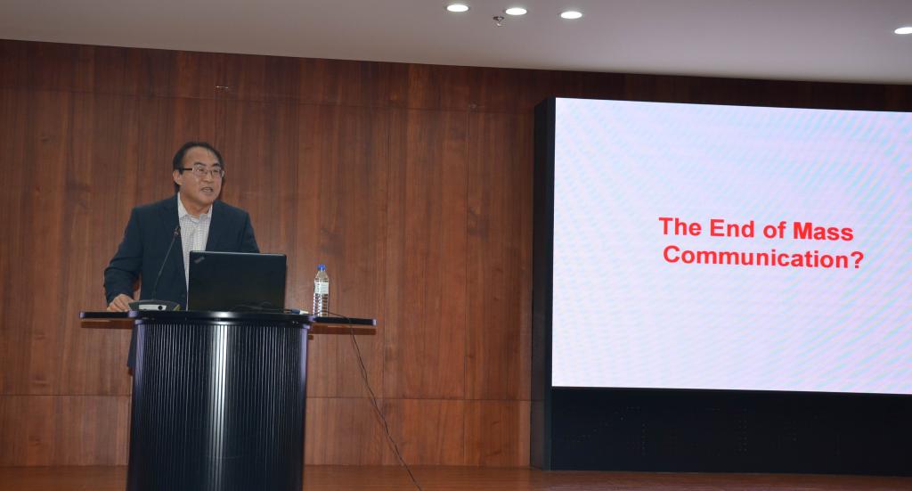 图2:孙志刚教授在讲座中指出:“大众传播是否终结?现在是提出和思考类似问题的时候,如果还不是太晚的话!”