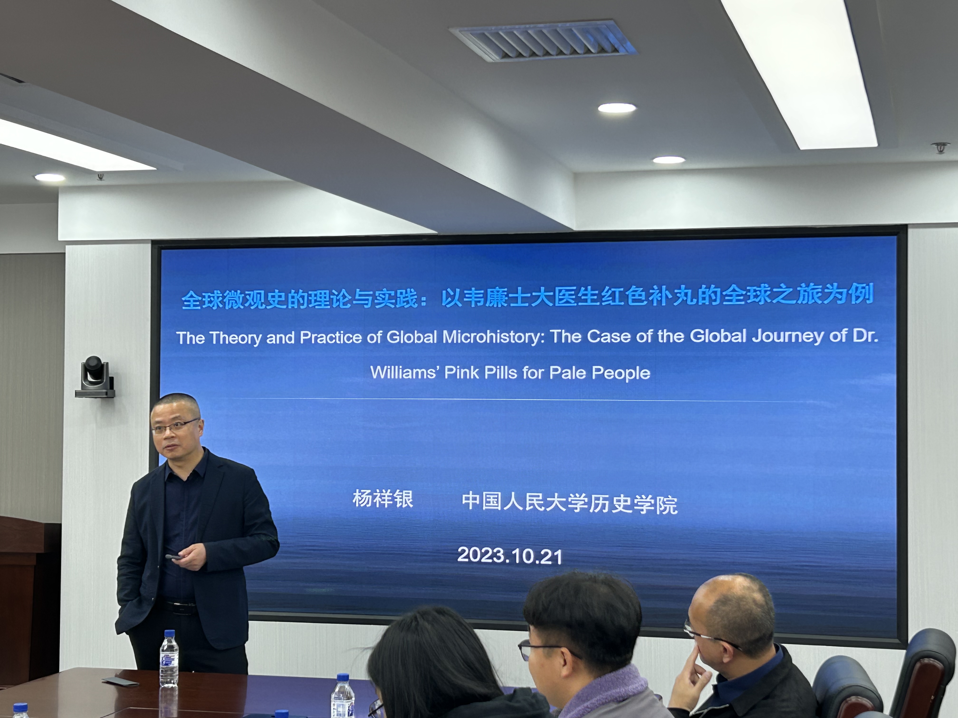 历史研究院学术讲座”2023年第4讲在东荣大厦十楼举行,中国人民大学历史学院教授杨祥银老师进行了题为“全球微观史的理论与实践:以韦廉士大医生红色补丸的全球之旅为例”的学术讲座,中国史系副主任贾小壮老师主持讲座,系主任蒋金玲老师,以及徐萍、王万志老师参加会议。