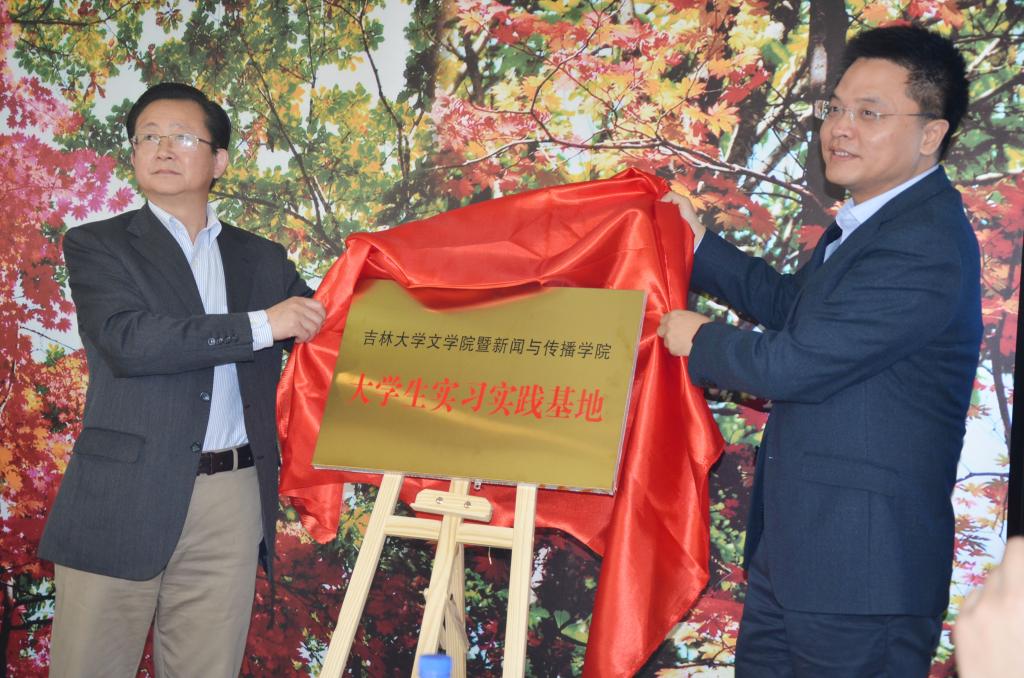 院长兼新闻与传播学院院长徐正考教授等领导出席仪式并讲话,徐正考院长与新华社吉林分社副社长金风共同为实习实践基地揭牌。
