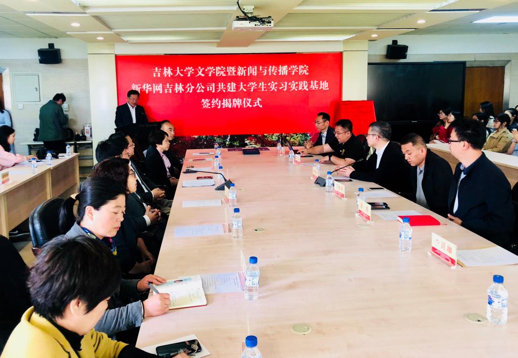 暨新闻与传播学院同新华网股份有限公司吉林分公司共建“大学生实习实践基地”签约揭牌仪式在东荣大厦10楼会议室隆重举行。仪式由成人在线