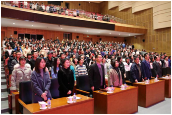 康永刚书记主持了本次开学典礼。首先,全体师生起立,唱国歌。之后,新生奖学金获得者、2019级汉语言文学专业的薛守芹同学作为新生代表发言。她表示,对来到成人在线