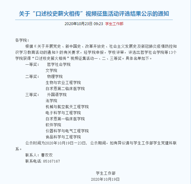 活动期间,学院积极选拔同学参加“口述校史薪火相传”视频征集展示活动。其中,成人在线