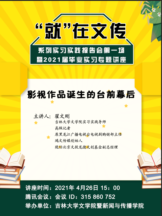 暨新闻与传播学院主办的“就”在文传系列实习实践报告会第一场暨2021届毕业实习专题讲座于腾讯会议平台成功开展。本次报告会邀请到成人在线