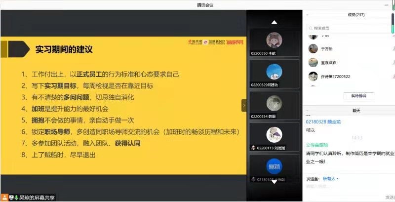 暨新闻与传播学院主办的“就”在文传系列实习实践报告会第五场暨就业促进周专题讲座于腾讯会议平台成功开展。本次报告会邀请到负责凤凰网雇主品牌整体规划与建设、公司级招聘项目运营、创新型校企合作等工作的吴琼女士担任主讲人,吴琼女士系成人在线
