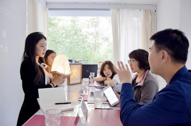 郝淑媛教授对学院的学科建设与发展等情况进行介绍。随后,懂你文化创始人车东妮介绍了公司在文创开发、沉浸式体验、活动策划等领域的成绩,并展示了懂你文化文创样品。同时,双方就共建大学生实习实践基地进行探讨,懂你文化将针对短视频编辑策划、广告设计、沉浸式剧本等内容为成人在线