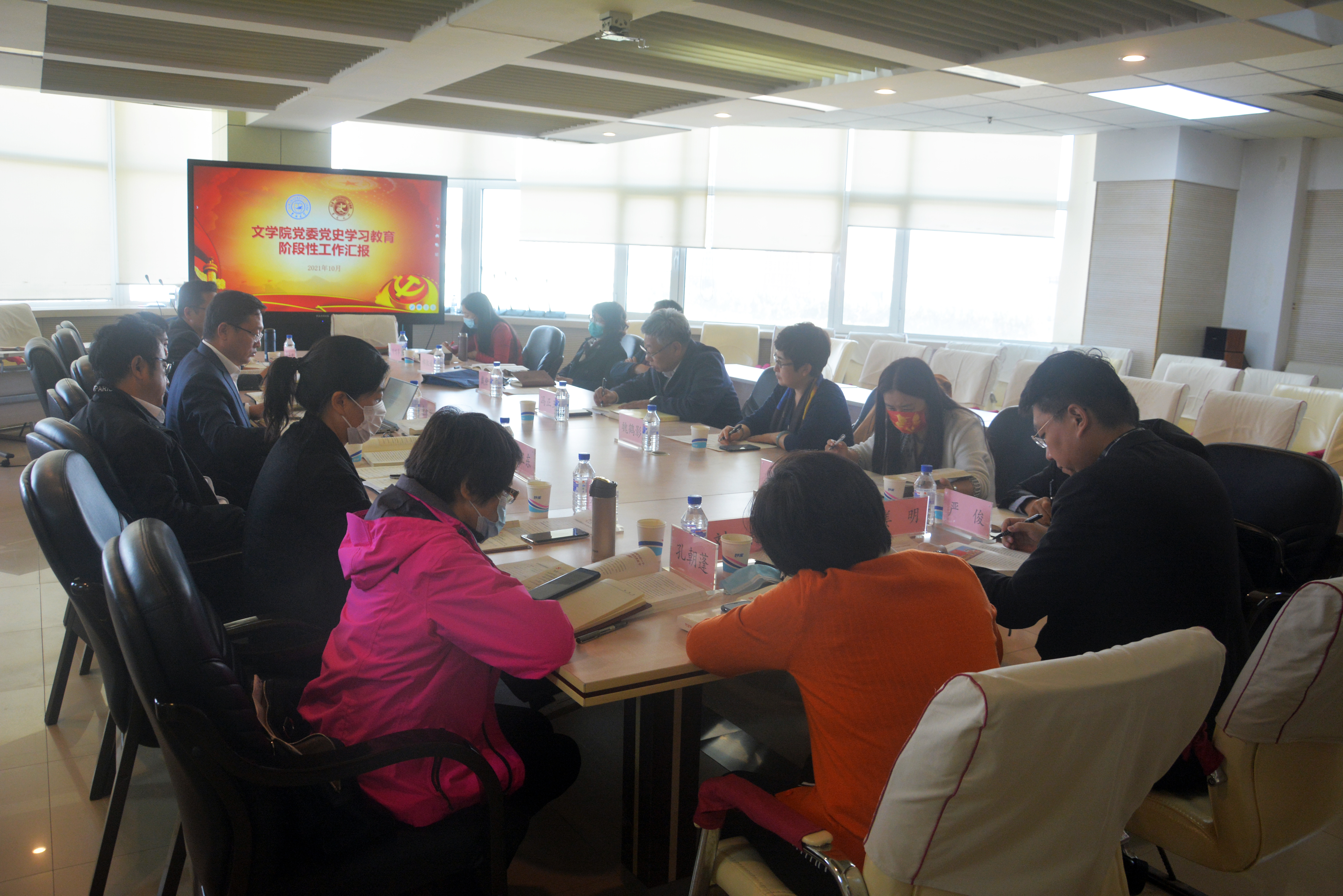 党委书记康永刚汇报了学院党委党史学习教育开展情况。冯正玉对学院带领全体师生在党的建设、科学研究、人才培养、校园文化建设方面取得的成绩表示肯定。同时,也对下一阶段党史学习教育工作提出了指导意见。他表示,一是将党史学习教育和巡视整改工作相结合,继续推进党的领导,强化学院的政治建设;在“我为师生办实事”中坚持正确的办学方向,明确立德树人的根本任务,把解决问题的措施落深走实。二是将党史学习教育和鲜明的红色传统相结合,运用学院得天独厚的资源和学科优势,挖掘研究,讲好中国故事,讲好学院故事,成为校园文化建设中的核心力量。三是将党史学习教育和推动学院发展建设相结合,班子成员精诚合作,把准时代发展脉搏,拓新拓宽人才引进和培养路径,将新文科做大做强。大家纷纷表示,要以党史学习教育为契机,在学习实践中找准动力之源,坚定理想信念,用党的奋斗历程和伟大成就鼓舞斗志、明确方向,把党的实践创造和历史经验启迪到科研工作和育人育才中,为学院的发展建设贡献更大的力量。