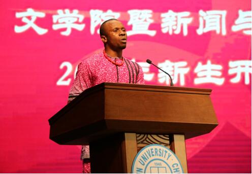 来自尼日利亚的2017级汉语国际教育研究生韩天扬同学代表留学生发言,真诚、幽默的言语中饱含着对中国、对成人在线