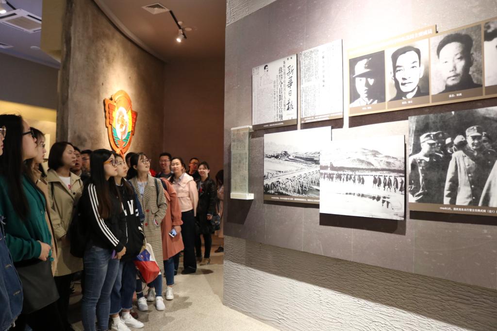 学生党员抵达纪念馆,开始在讲解员生动的讲解下体会那段红色历史。刚刚进入序言厅,同学们就被展现东北民主联军的黑色浮雕所震撼,毛泽东主席的手书电文:“化四平街为马德里”向同学们展现了共产党人保卫人民,保卫革命成果的坚定决心和意志。