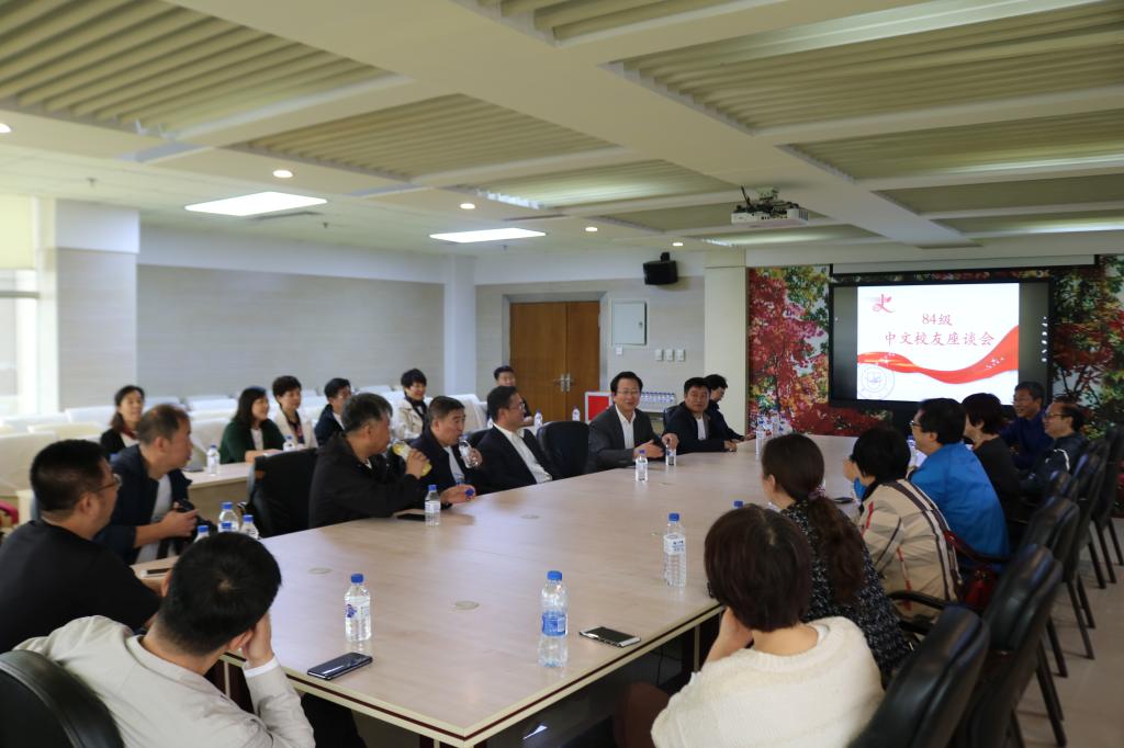 一定为你们提供最好的服务!”接着,84级中文系的校友们也纷纷畅所欲言。班长苗越学率先发言,回忆起了自己的在校时光。他讲道,最令他触动的是校史馆中陈列的那幅唐敖庆先生的眼镜,这令他想起了唐敖庆先生为他上过的那堂党课,这一切他都还记忆犹新。84级中文系书记郭娟随后发言,她谈到:“作为吉大人,始终都念着吉大对自己的培养,在各行各业始终都在努力,争取不负吉大对自己的培养。”84级校友杜占明、许燕姬、闫长斌等人也纷纷发言,校友们表示回到吉大就像回到家一样温暖,他们也时刻关心着母校的发展,并且愿意为母校的发展贡献出一份力量。座谈会后,84级校友们与各位老师在东荣门前合影留念。