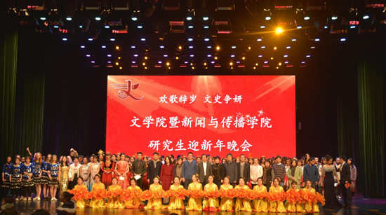 暨新闻与传播学院成功举办了以“欢歌辞岁、文史争妍”为主题的研究生迎新年晚会。院党委书记康永刚、院长徐正考、学院各部门的领导、老师出席了本场晚会。