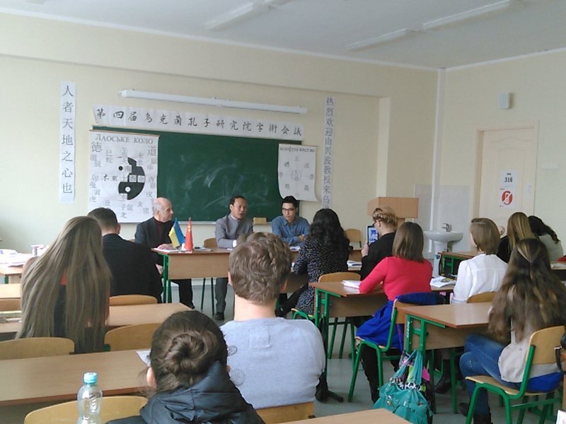 “乌克兰孔子学派:儒家思想的历史与现代”是乌克兰汉学研究的专题学术会议,由基辅鲍里斯·格里琴科大学主办,乌克兰从事汉学研究的相关学者参会,会议就中国传统儒家思想、中国文化的历史传承、中国传统思想在当代的应用等学术问题进行了深入研讨。由兴波老师在会议上特邀做了《以“德”为核心的中国传统思想建设》的学术报告,指出中国传统思想中一直重视“德治”,当今时代以“德”为核心的思想对民族性格和民族心理的形成起着至关重要的作用;在政治生活层面,对于治国安民、国家统一具有重要意义;在文化建设方面,既要弘扬民族文化,同时也应加强与世界文化的交流沟通。由兴波老师还同乌克兰的著名汉学家列扎年科·费达洛维奇等学者就相关的学术问题进行了深入探讨,回答了乌克兰学者、同学提出的问题,并介绍了成人在线