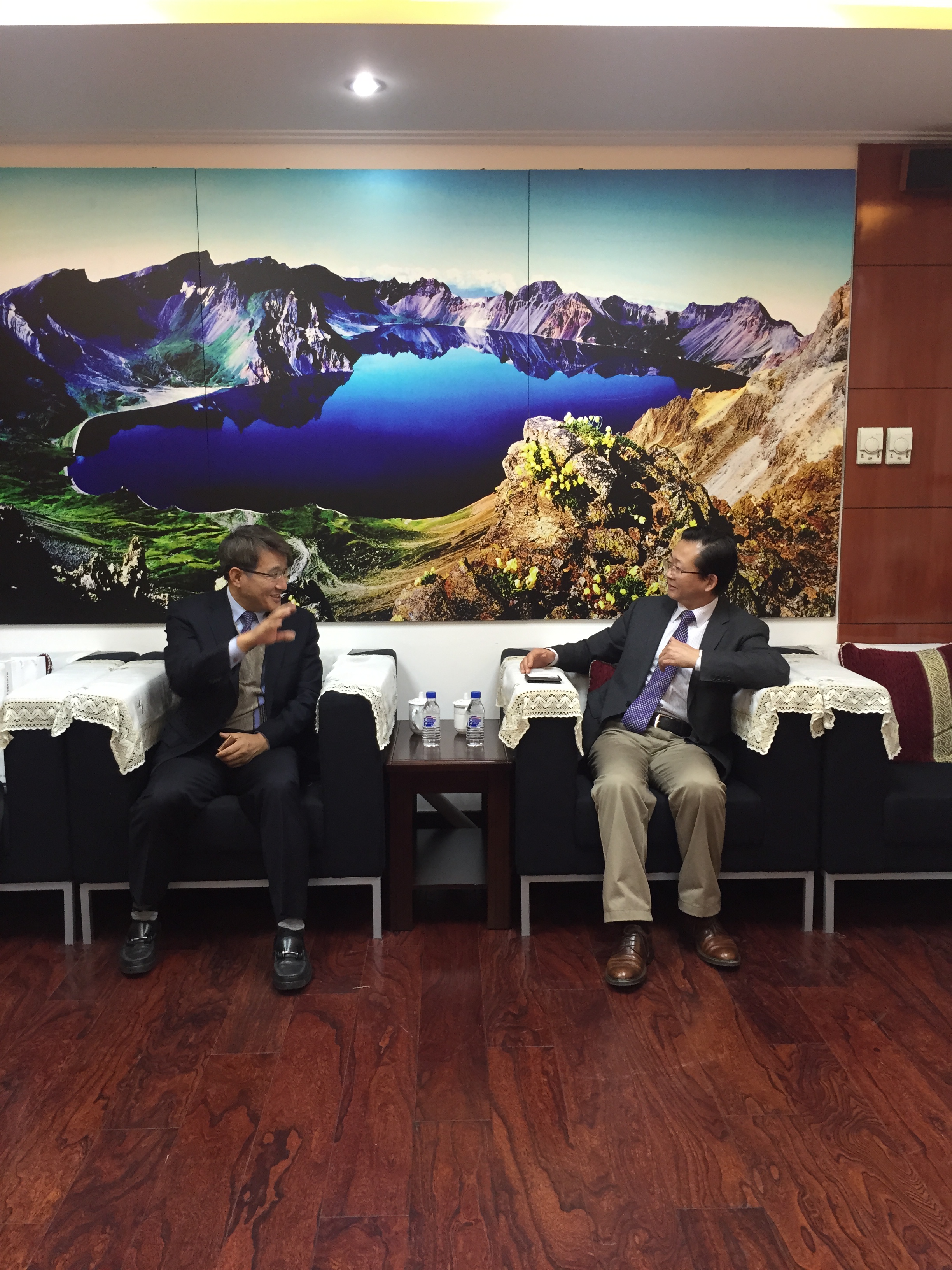 2016年10月28日,韩国汉阳大学国际教育学院院长兼孔子学院院长徐元南访问成人在线 ,院长徐正考教授、国际教育学院副院长白冰与来宾进行会谈。