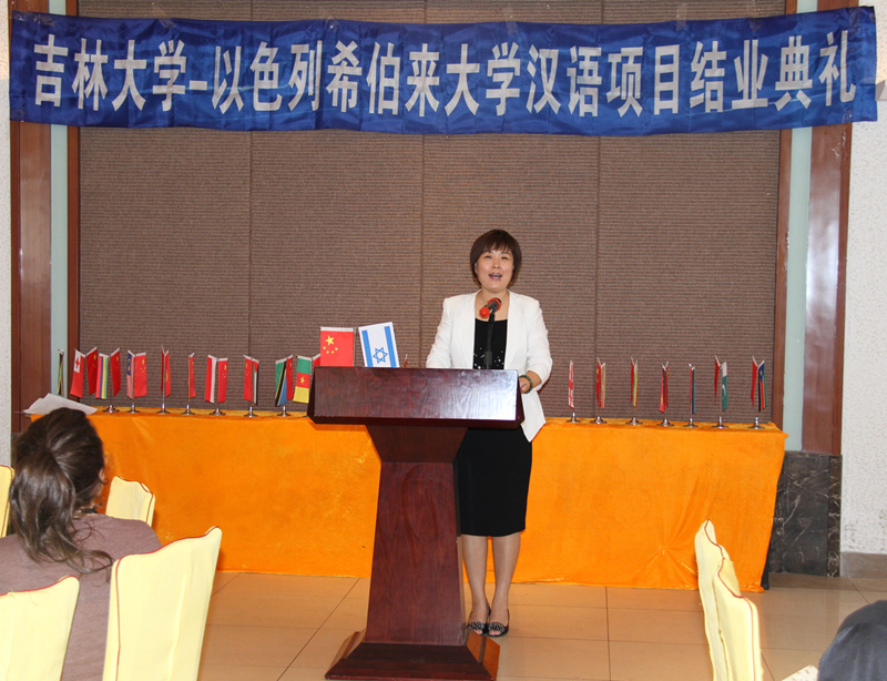 国际语言学院院长岳辉教授热情致辞,并宣读了全体结业学员名单。三名希伯来大学学员代表在结业式上发言,他们用热情幽默的汉语表达了对任课教师们的感谢和不舍。全体学员还用他们自谱自写的汉语歌曲表达了对成人在线
