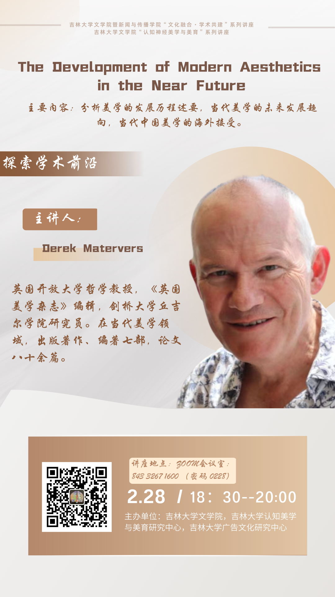 Derek Matervers教授长期从事当代美学研究,担任英国开放大学哲学教授,开放大学空间伦理组织联合主任,《英国美学杂志》编辑,剑桥大学丘吉尔学院研究员,出版著作、编著七部,论文八十余篇。