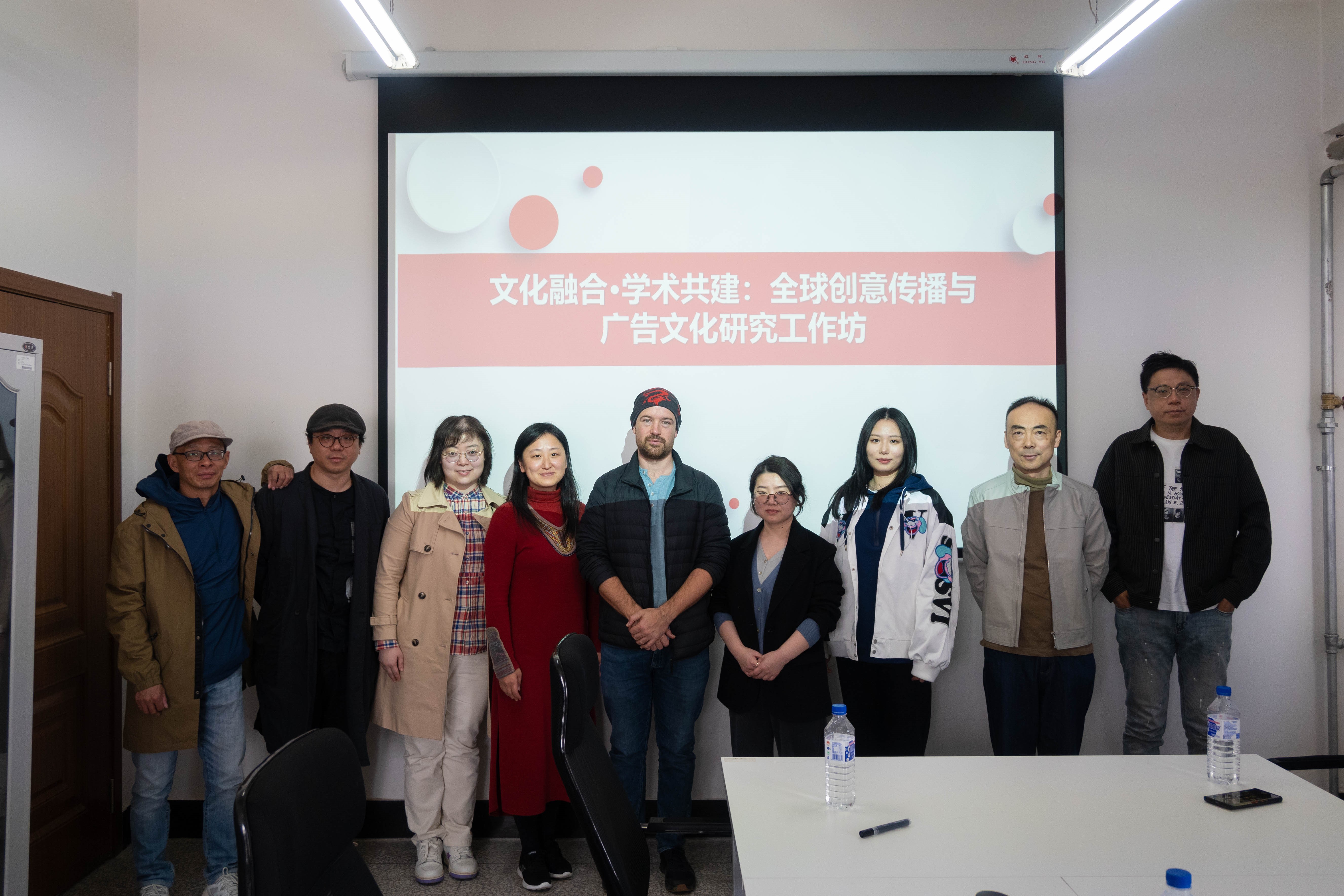 广告文化研究中心参观交流。中心主任鞠惠冰老师、中心副主任王博学老师、传播学系副主任王健老师、国际传播教研室主任赵贺老师、创意传播设计教研室主任王志成老师,广告学专业本科同学及传播学、新闻与传播专业硕士同学参与了本次活动。