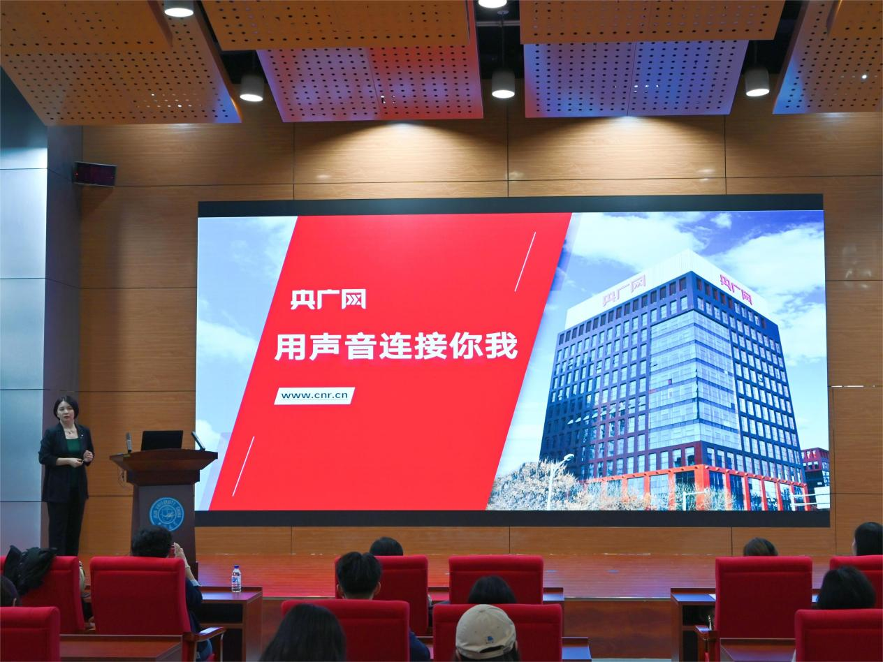 校园宣讲会。央广网总编室主任蔡荣波以“用声音连接你我”为主题与同学们分享了央广网发展的前世今生,央广网高级人力资源总监汪潇、智媒中心负责人王薇则从实习培训机制、考察机制、人才引进政策、地方分网发展前景、记者素养培育等方面解答了在场同学们的踊跃提问,并鼓励同学们不断培养探索能力、思辨精神,在实践中提升专业素养,成为一名有理想、有担当的新闻人。