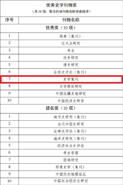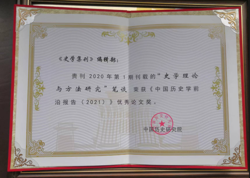 《史学集刊》荣获郭沫若中国历史学奖“优秀史学刊物奖·优秀奖”。