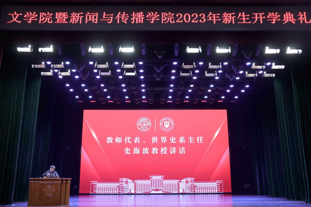 随后,学院党委书记霍志刚为2023级本科生班主任老师颁发聘书。接着,学院教师代表、世界史系主任史海波教授讲话,史教授以幽默恳切的话语建议同学们规律作息、锻炼身体,“野蛮其体魄,文明其精神”,也要扎根专业、梳理总结,用专业知识武装头脑,适当扩展接触不同学科领域知识,锤炼更为严谨的知识体系,传承人文关怀。