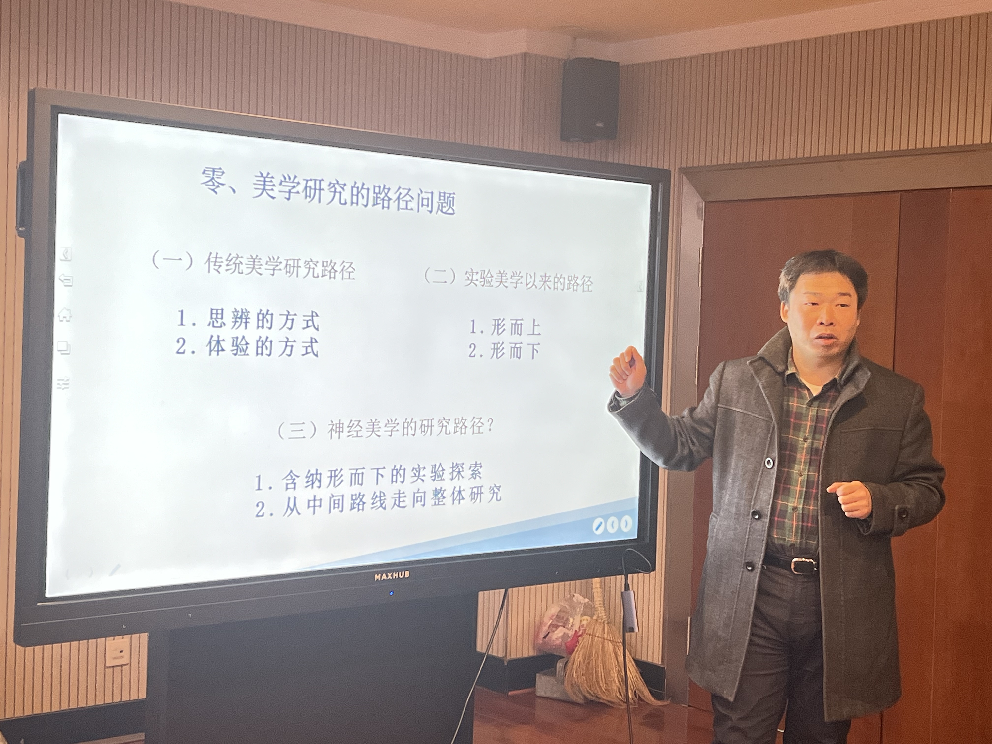 “励新优秀青年教师”培养计划入选者、中文系孟凡君副教授作了题为“从中间路线到整体研究:美学研究路径再思考”的学术报告。在报告中,孟凡君副教授梳理了美学研究路径的历史演变与当代状况,即从古代的“思辨”和“体验”的同步运用演变到近代以来的“形而上”与“形而下”的分野,在反思近代以来美学研究路径产生分野的原因、表征及影响的过程中,阐述了重新重视体验式研究“中间路线”的必要性和重要性。在此基础上,从中间路线向“形而下”与“形而上”路线兼容,形成更具理论建构包容力的整体研究模式,有助于拓宽神经美学研究视野并增强其现实影响。结合具体论文写作与思考,孟凡君副教授针对神经美学整体研究的操作方法和未来之路进行了进一步阐释。
