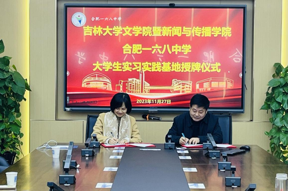 暨新闻与传播学院副院长李冬梅代表学院,分别与合肥一六八中、安徽中广传播等单位,签订实习实践基地协议并授牌。