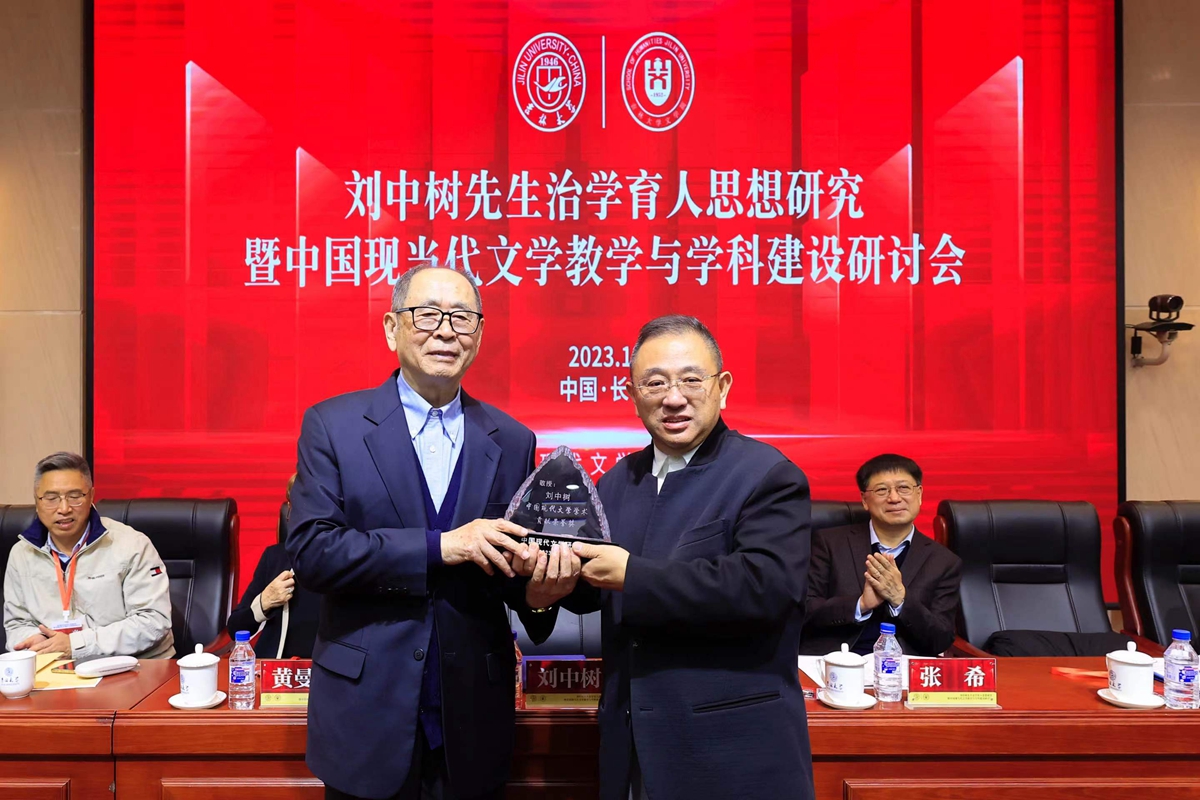 张希强调,今天刘中树先生获此殊荣,既是对他个人学术成就的肯定,也是对全体见证者的又一次激励,鞭策着全校师生赓续传统,守正创新。希望广大师生以刘中树老师为榜样,立文人风骨,发思想先声。