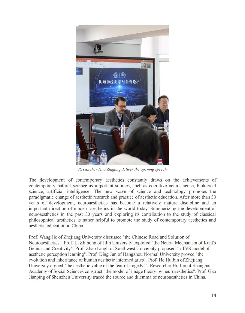 《通讯》对本次“认知神经美学与美育”论坛的报道,有助于国际美学界更好地了解我国当前“认知神经美学与美育”研究的最新发展动态与进展,有助于展现我国神经美学研究者的精神理念和风貌,有助于进一步开展美学研究的国际交流与合作。