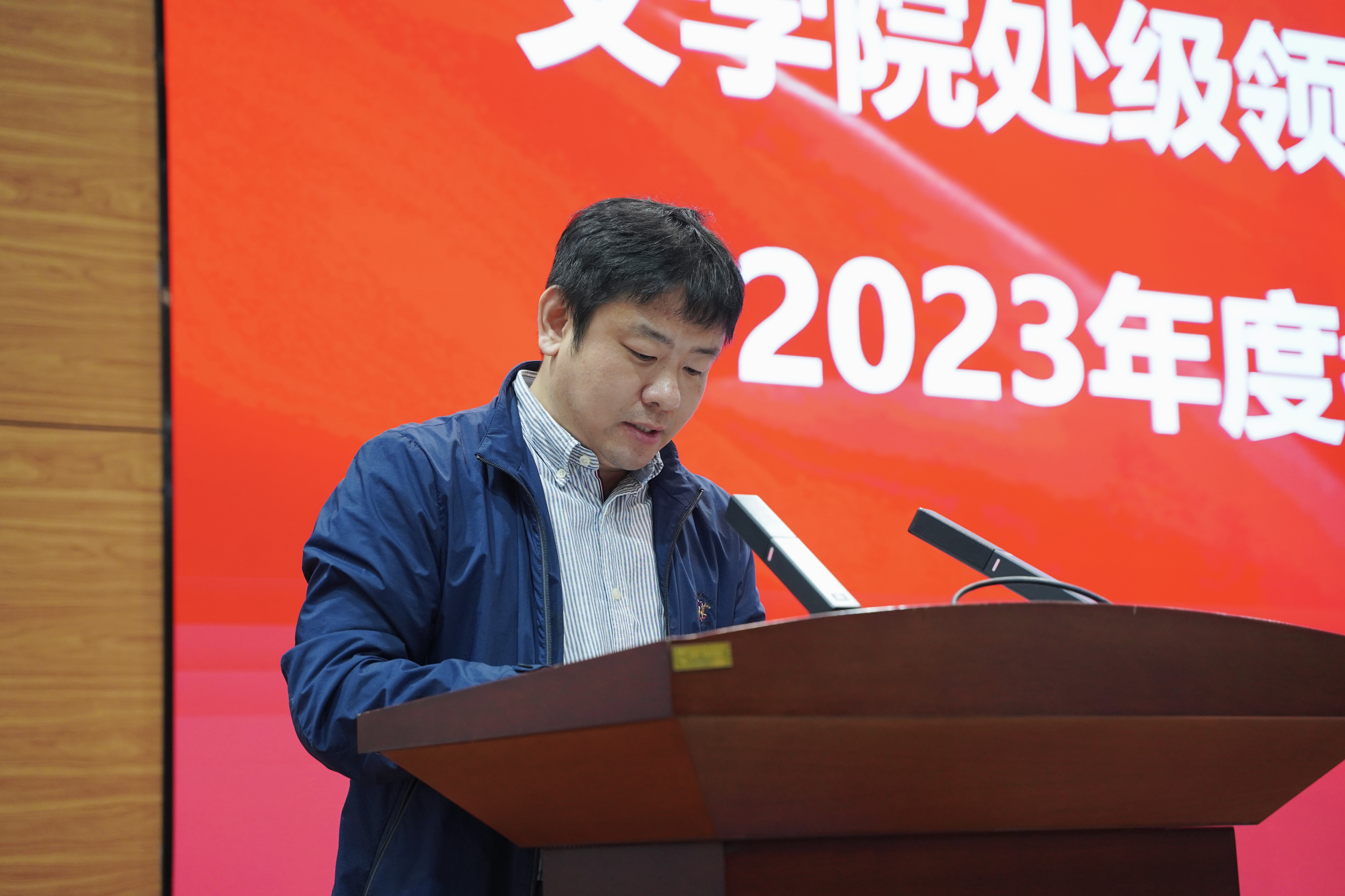暨新闻与传播学院在中心校区国际大讲堂召开处级领导班子和领导干部2023年度考核述职测评会,学院全体教职工参加会议,会议由党委副书记兼纪委书记刘卓主持。