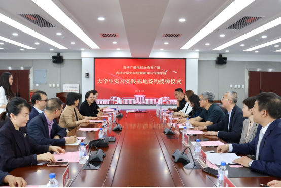 暨新闻与传播学院与吉林广播电视台教育广播共建“大学生实习实践基地”授牌签约仪式于东荣大厦十楼1004会议室成功举行。吉林广播电视台领导干部和大学生实习实践指导教师代表,成人在线