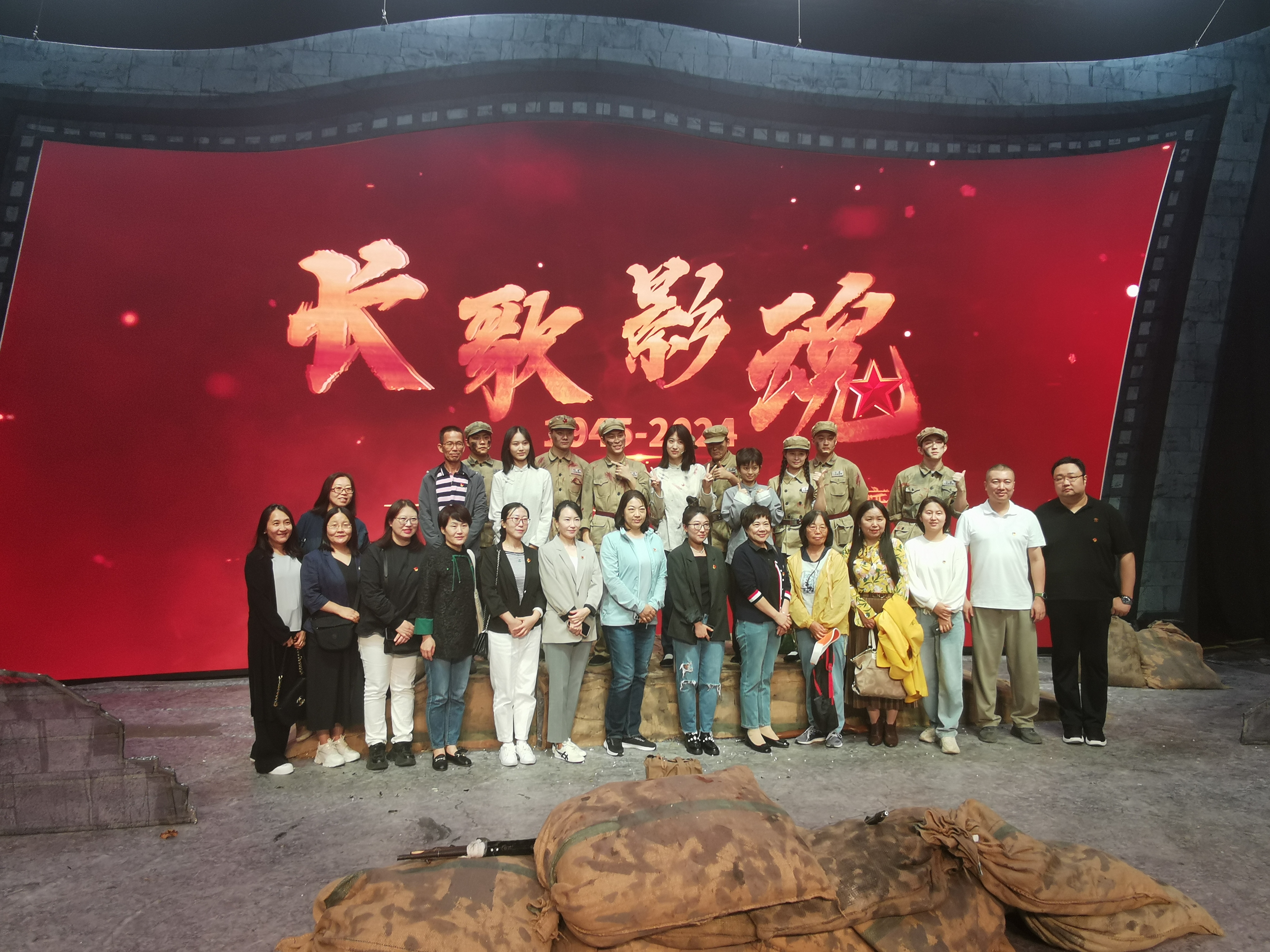 随后,学院教师党员观看了舞台剧《长歌影魂》。《长歌影魂》是根据长影经典影片《董存瑞》《赵一曼》《英雄儿女》改变而成,运用生活片段与电影场景交织的手法,通过现代青年的视角讲述红色故事,将革命英雄的故事情景再现,完成了一场精彩的跨时空对话。