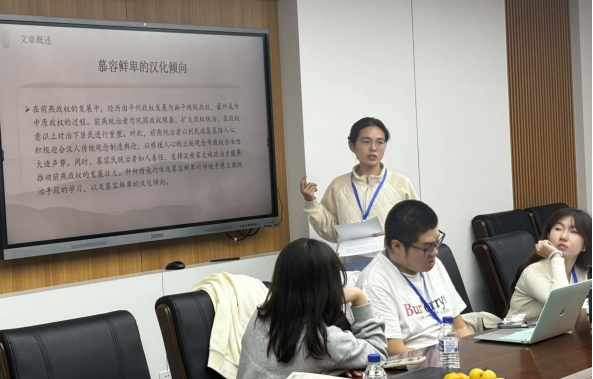 在分组讨论环节中,与会同学按主题分为四组,并以组内讨论与评议的形式作研讨交流。第一组由中国史系陈鹏副教授主持,论文研究时段上起西周,下至辽朝,主要集中于中国古代民族、族群身份认同及其变迁和古代民族、族群间关系两大问题,在史料运用上注重将传世文献与出土文献、考古资料相结合,观点颇具新见。