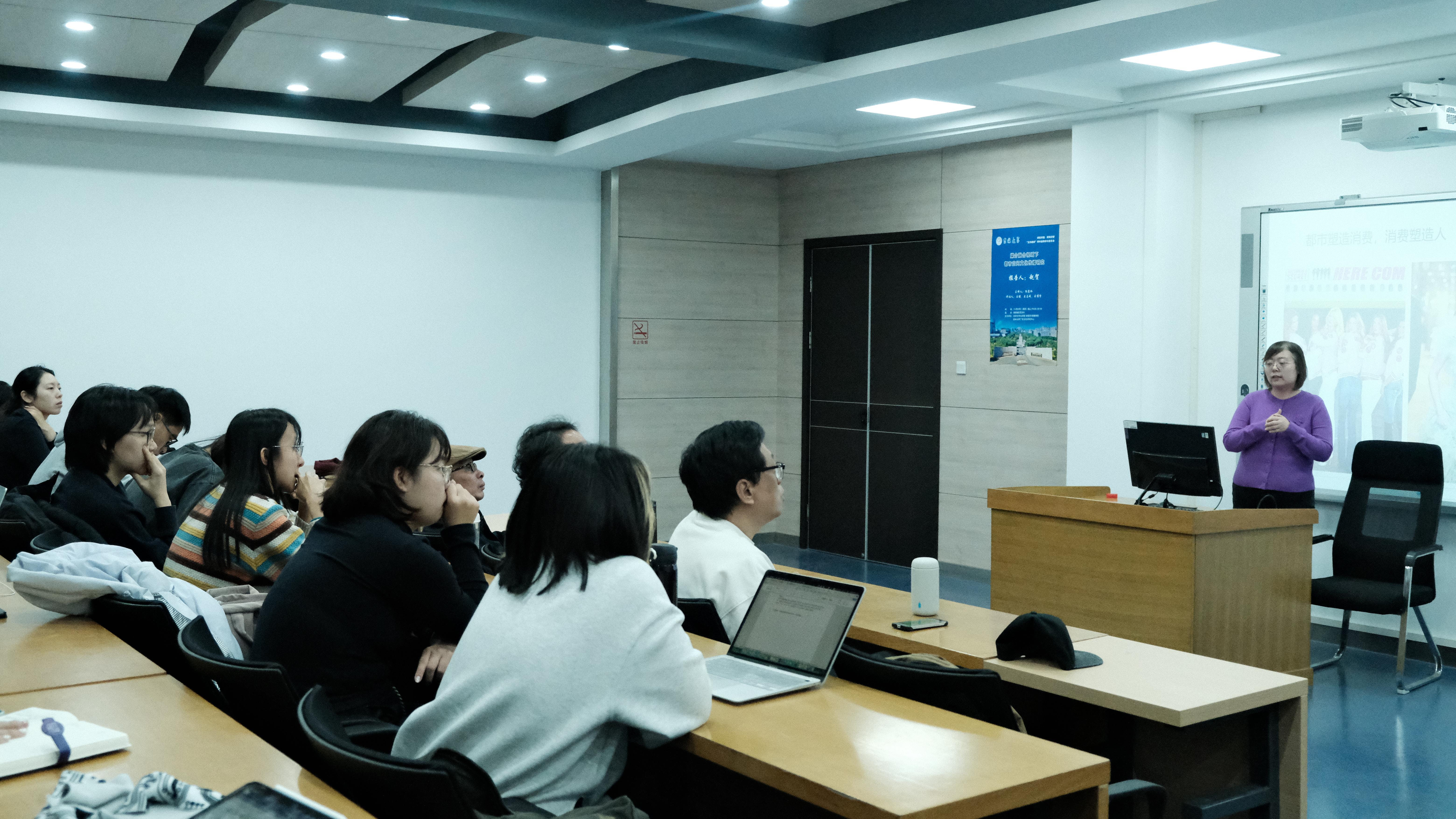 暨新闻与传播学院副教授赵贺老师主讲,鞠惠冰教授担任主持,学院师生到场聆听。