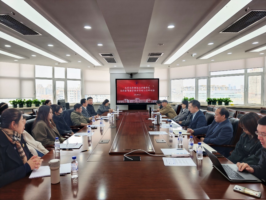 党委副书记兼副院长葛宗梅、新闻与传播学院副院长姜明、学院督导组组长由兴波,校、院督导组成员、各系部主任、教研室主任及青年教师代表共同参会。会议由成人在线