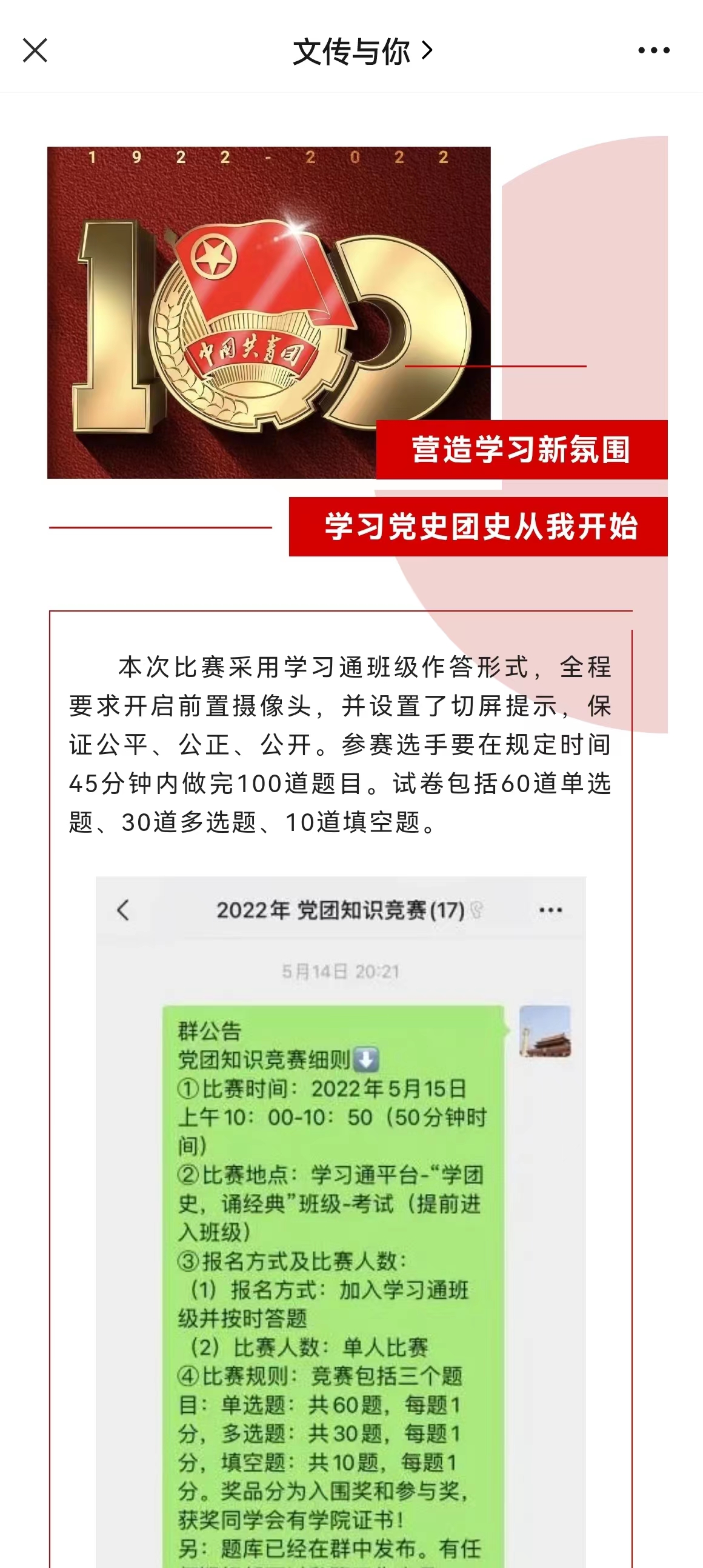 为增进青年学生对党史、团史的学习,5月起,以建团百年为契机,成人在线