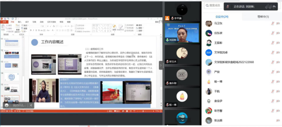 2021-2022学年本科生班主任考核登记表》,了解各位老师担任班主任期间的工作情况,并听取申优答辩。会上班主任们从实际工作内容出发,阐述本人在本年度的工作亮点。在2022年疫情期间,多名班主任老师协助辅导员做好对学生的教育和引导,疏导学生们心理压力及恐慌情绪,为学生录制抗疫相关视频;针对毕业年级学生面临考研就业多方难题的情况,帮助学生做好专业及院校调查,为学生推荐就业机会,做到全面了解学生情况,关爱学生。