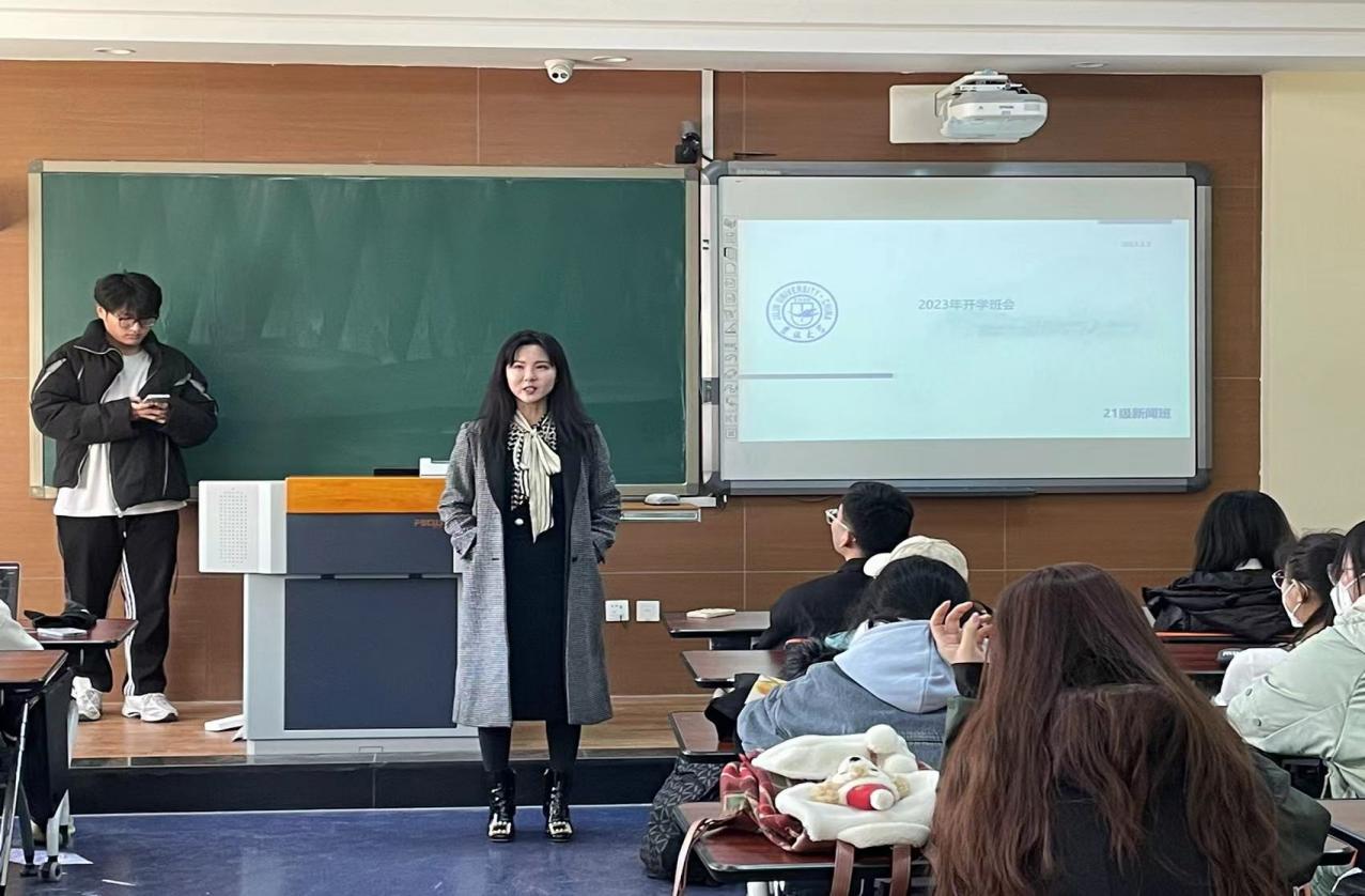 2023年3月3日,新闻学专业于13:30在经信教学楼E305教室召开本学期第一次班会。班主任张斯琦老师强调了沟通交流问题,包括班级同学之间,寝室同学之间以及与学长学姐之间的交流沟通。在学业方面,老师鼓励同学们在学习新闻实践相关课程时,要打好基础,在平时的作业中养成良好的论文写作习惯,同时也要保持创造力和新媒体思想。新学期起始,张斯琦老师建议同学们做到自律、自信、有自我规划地开始新学期的学习,能够在大学收获扎实的理论知识的同时尝试更广泛的社交。在参与比赛或社团活动的过程中提升自我。会议的成功召开使同学们未来的学业安排有了更加深入的了解,明确了以后的学习目标和学习规划,促使同学们意识到在以后的学习中需要不断严格要求自己,以积极的心态参与到学习与生活当中。相信同学们会在新的学期迈向新的高度。