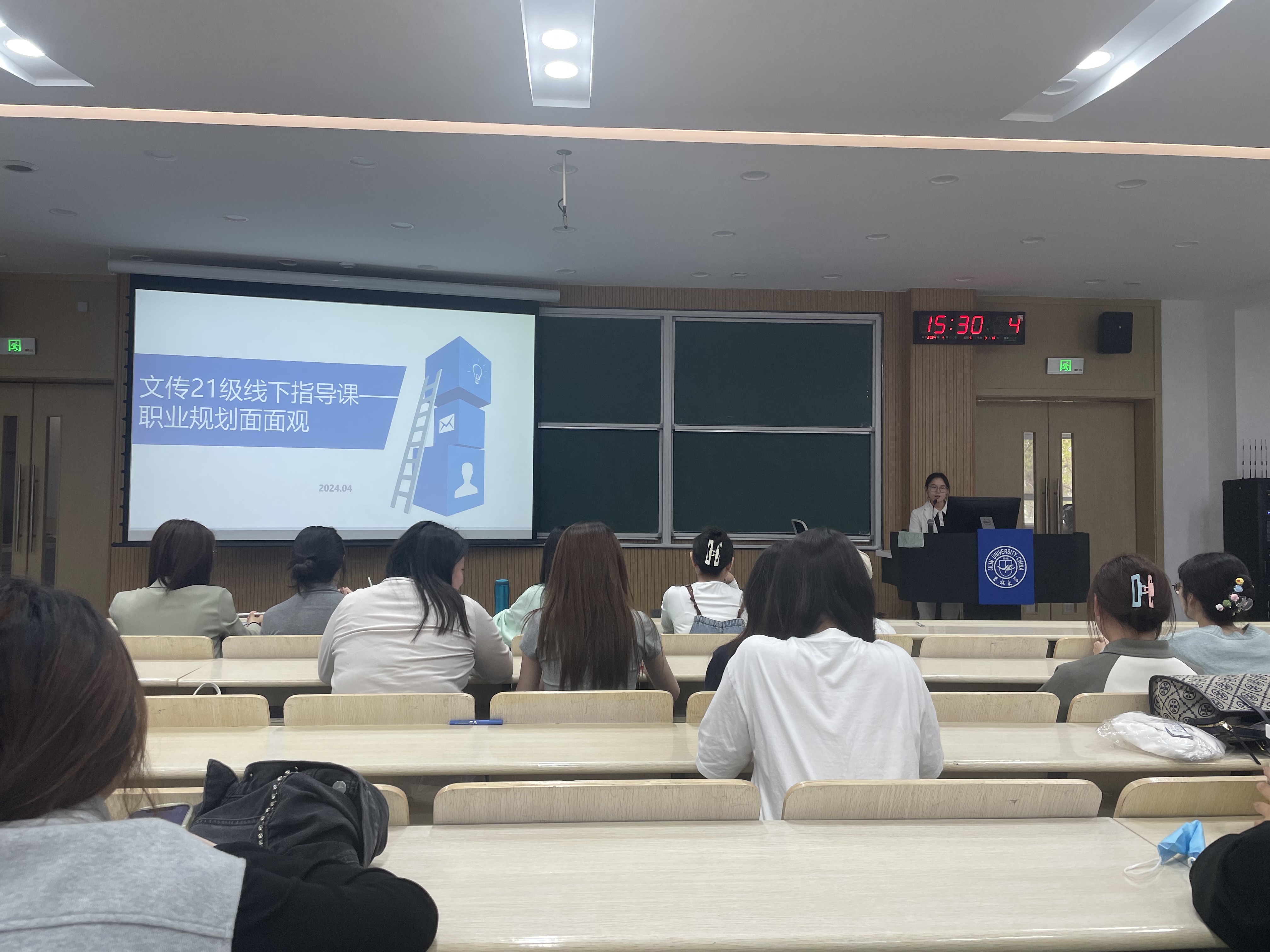 第一个环节,临近大四学年,杨佳欣老师着重在实习和就业招聘等职业规划方面向同学们分享了大量的信息,提出了全面有效的指导建议。杨佳欣首先介绍了当前就业市场的形势,鼓励同学们积极参加各类招聘活动。在国家政策方面,同学们了解到了国家公务员考试、各类选调、“三支一扶”、部队文职以及“西部计划”等政策性就业信息,并就此类信息进行了深度分析和拓展交流。紧接着,杨佳欣提到,学院将持续开展“就在文传”系列讲座,邀请业内专家和优秀校友与同学们面对面交流,为同学们提供宝贵的职业指导和建议。希望同学们能够抓住机会,提高个人综合素质,达成自己理想的职业目标。