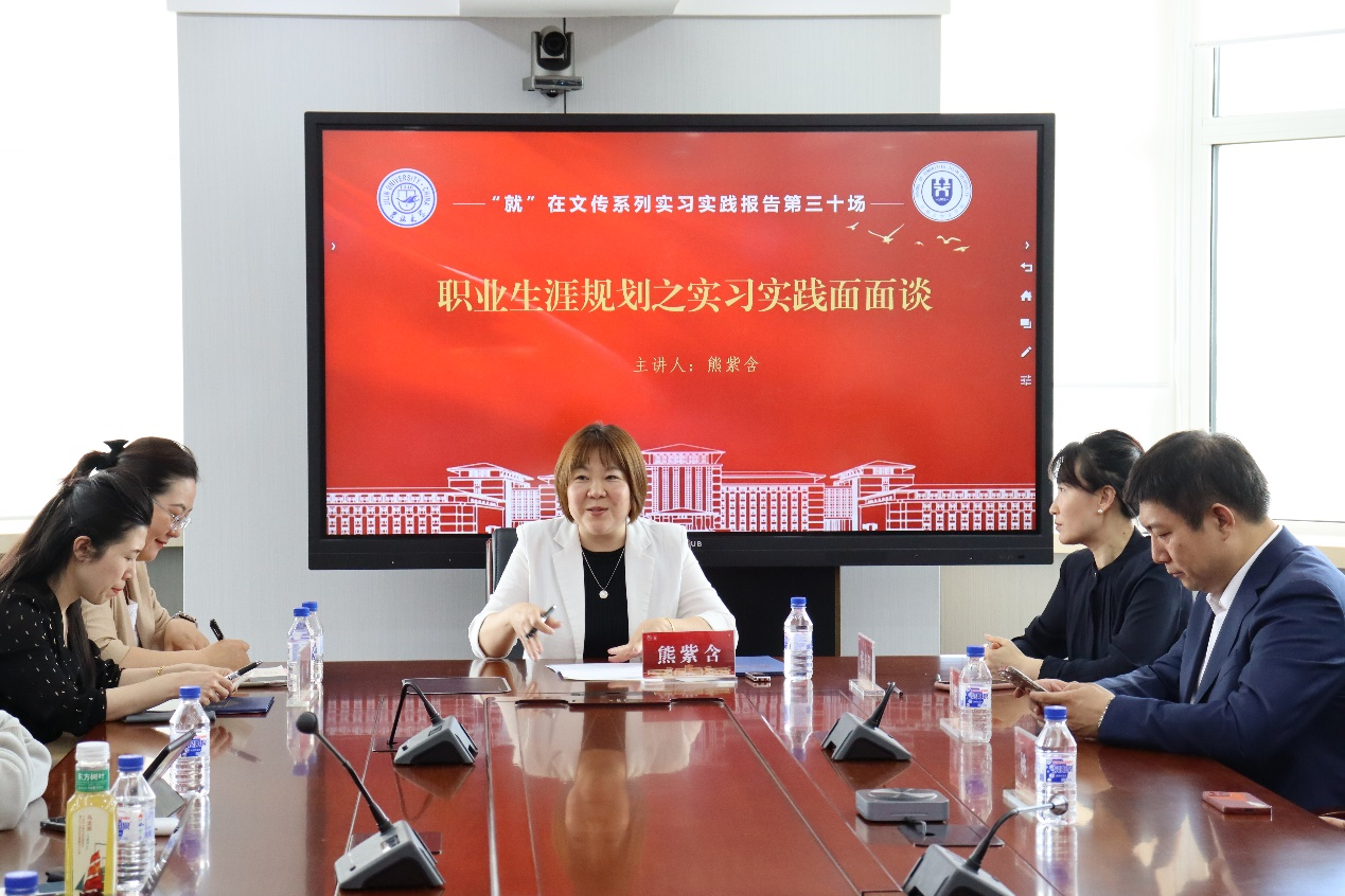 暨新闻与传播学院“就”在文传系列实习实践报告会第三十场《职业生涯规划之实习实践面面观》于东荣十楼会议室成功举办。此次活动邀请吉林省广播电视台教育广播女性节目组制作人熊紫含担任主讲嘉宾,由成人在线