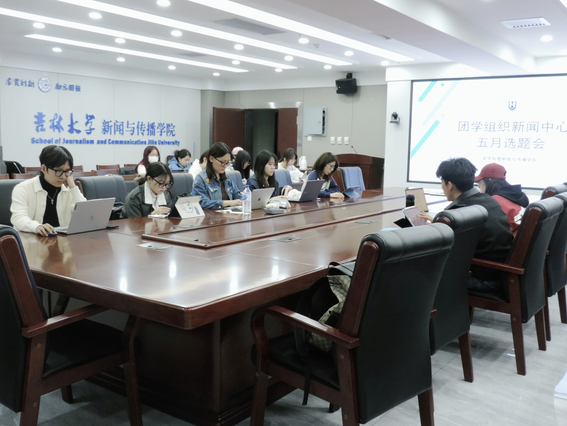 暨新闻与传播学院团学组织成人在线在东荣大厦十楼会议室举行成人在线五月选题会。成人在线副主任黄亦德主持本次会议,成人在线全体学生记者参会。