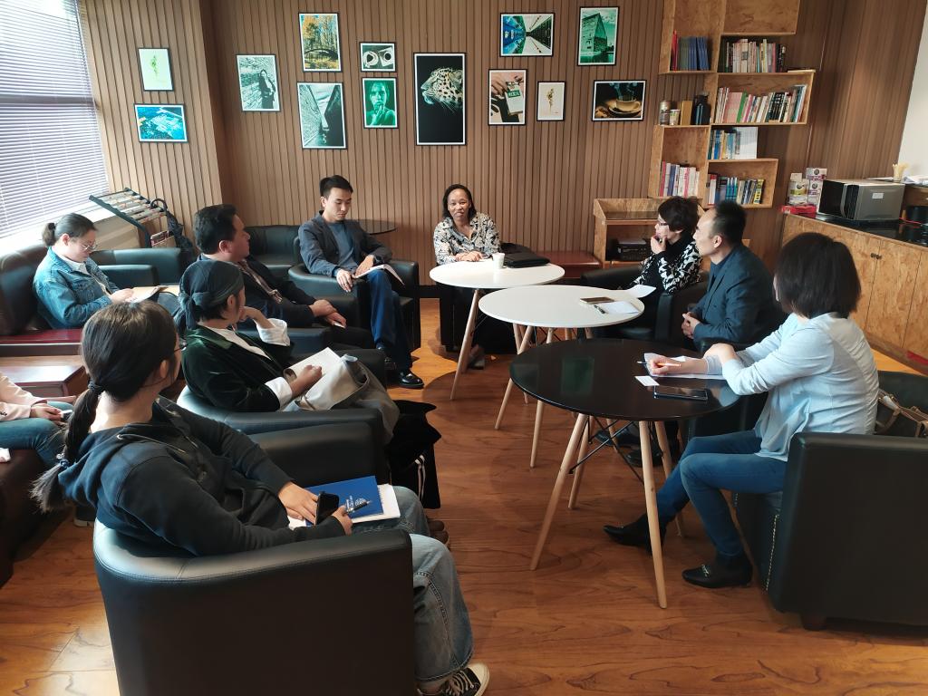 教师与Nancy就双方关注的问题进行了交流,就师资互访、教学合作等方面的内容畅谈了想法。会上,孔院长与Nancy相约于明年邀请堪萨斯州立大学的师生来访成人在线