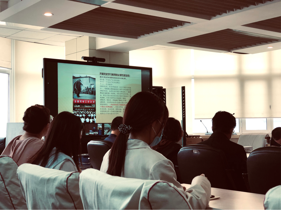 党委组织学院全体处级领导干部、党委委员、纪委委员、各系教工党员、学生党支部书记和支部委员于东荣十楼会议室在线观看视频直播,进行学习。