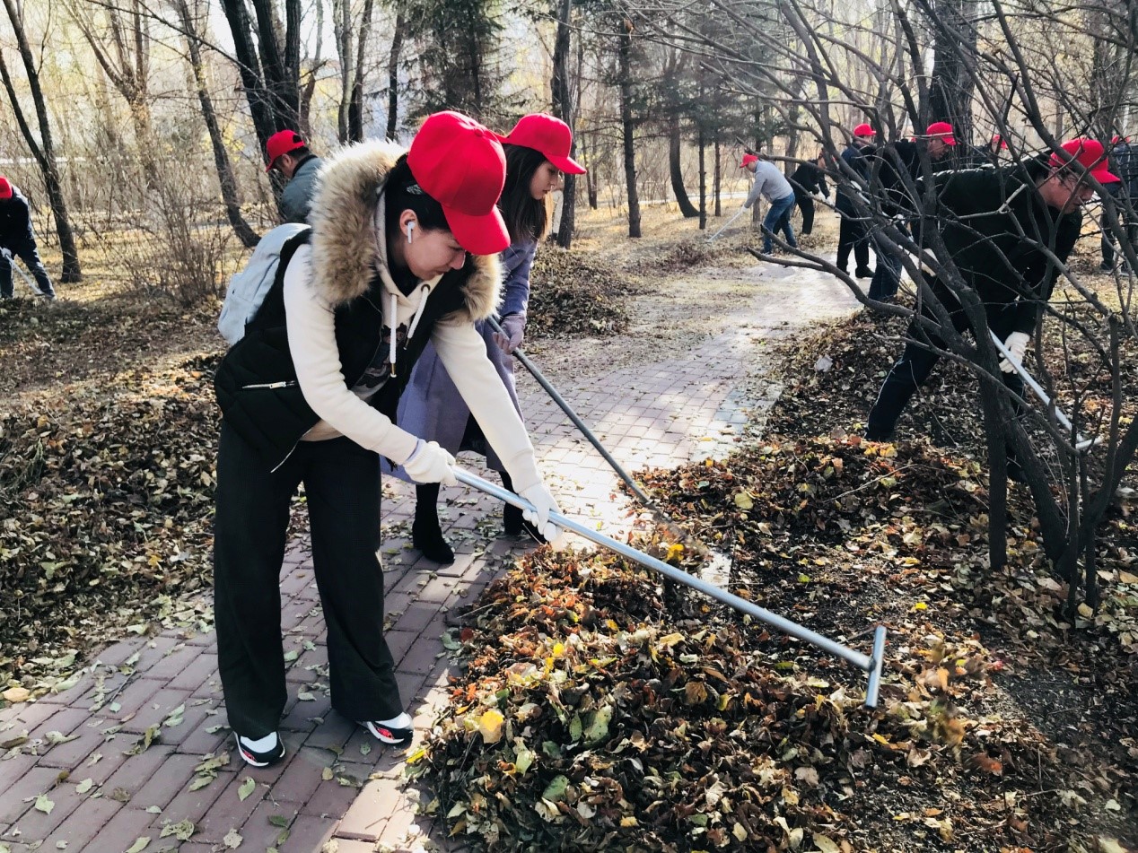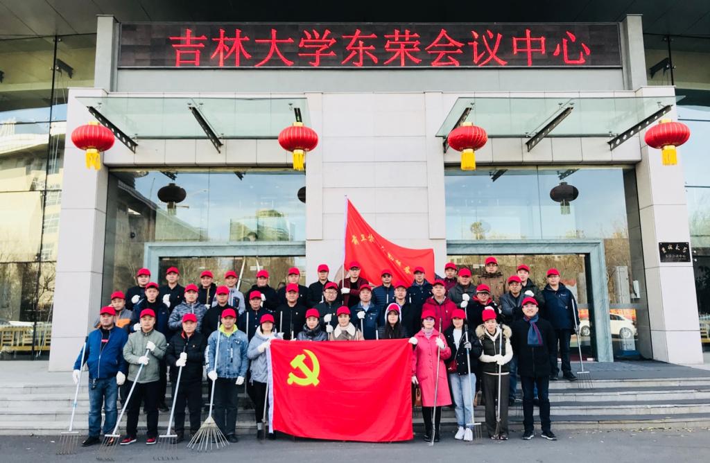 新闻、传播及广播电视艺术系暨吉林省传播学会教工联合支部与前卫校区后勤服务中心教工支部联合开展了“清扫落叶,美丽校园”主题党日活动,40余名党员携手清理了东荣大厦南侧树林里的落叶。