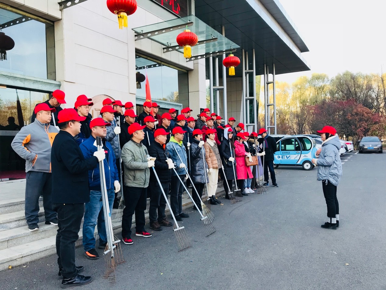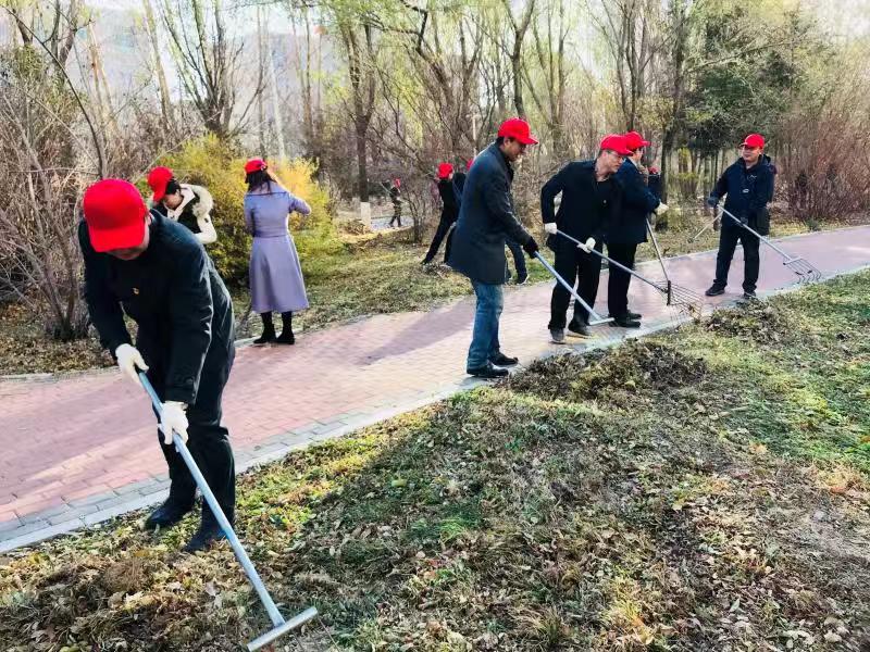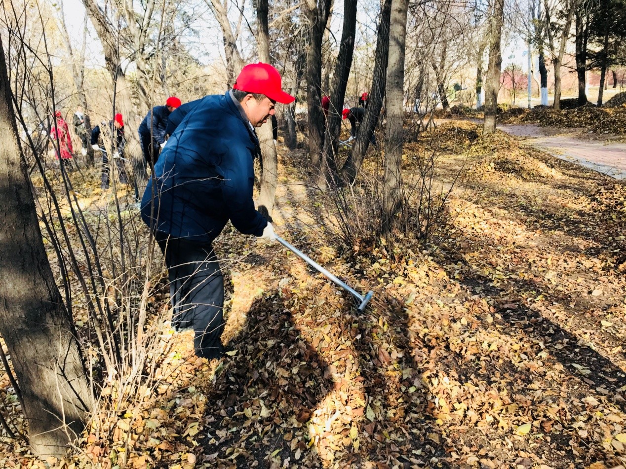 为了更好地开展本次志愿活动,高普有还特地替新闻、传播及广播电视艺术系的党员教师们借来了手套,并事先准备好了清扫工具、运输车辆。在前卫校区后勤服务中心党员教工的带领、示范下,新闻、传播及广播电视艺术系的党员教师很快就掌握了用耙子清理落叶的技巧,他们弯腰、挥耙、回搂,干净利落地将散落在地上的树叶,聚拢成堆。当日气温虽然只有2摄氏度,但大家却干得热火朝天,协作密切。经过40分钟的辛苦劳动,被清理的的区域焕然一新,显露出了大地的本色,前卫校区后勤服务中心的员工将落叶装车运走,教工们胸前的党员徽章在阳光下熠熠生辉。本次志愿活动共清理约2.4万平方米面积上的落叶。