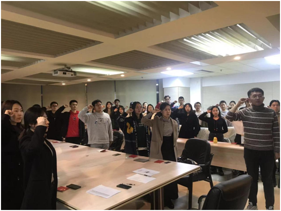 本科生第一、第二党支部全体党员同志一同重温入党誓词,全体党员同志面对入党誓词再次庄严宣誓,回顾自己之前的不足,向优秀的党员同志学习,通过不断努力完善自我。