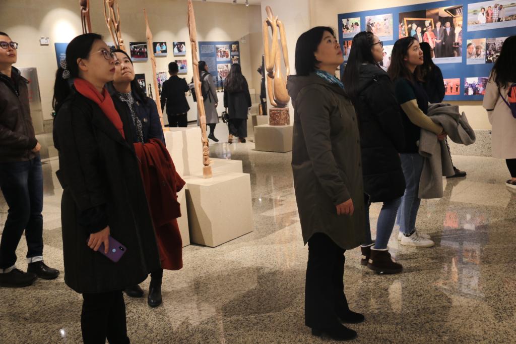 师生还参观了松山韩蓉非洲艺术收藏馆内的展列陈设。长春世界雕塑公园松山韩蓉非洲艺术收藏博物馆作为国内第一家非洲现代艺术专题博物馆,是我国非洲马孔德木雕艺术的集结地, 也是目前世界收藏坦桑尼亚马孔德木雕数量最多、品种最全、艺术水平最高的艺术收藏博物馆,其极具非洲艺术感的雕塑,给成人在线