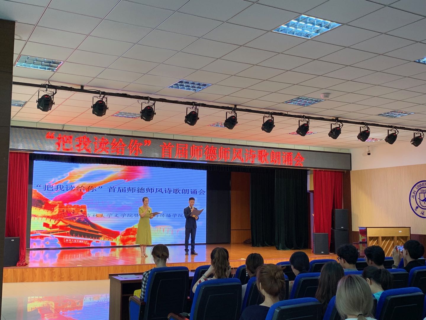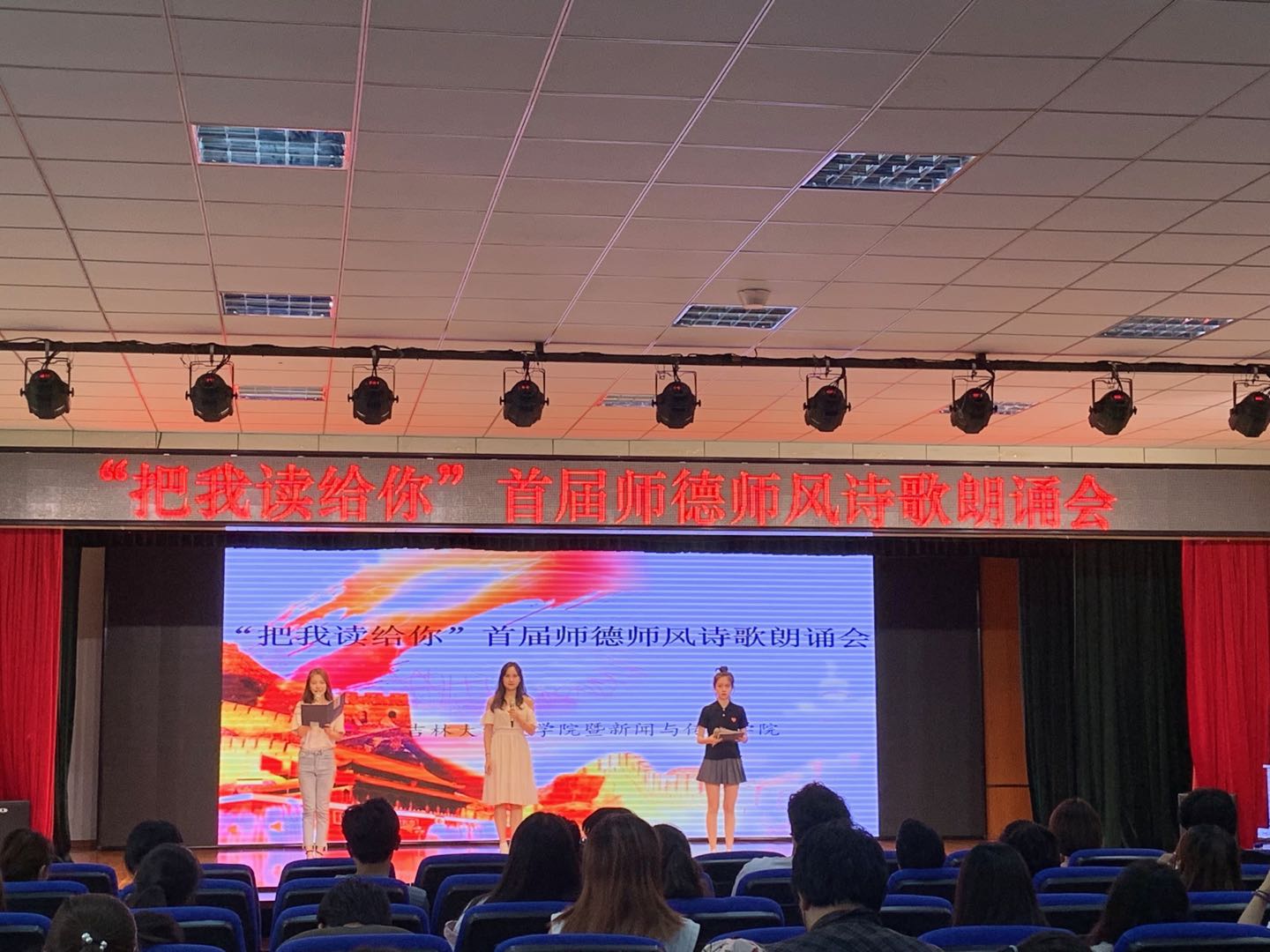 暨新闻与传播学院于2019年9月5日下午5点30分在田家炳礼堂举办了“把我读给你”首届师德师风诗歌朗诵会。新闻与传播学院广播电视艺术系副主任张芳馨老师作为点评嘉宾出席了本次活动。