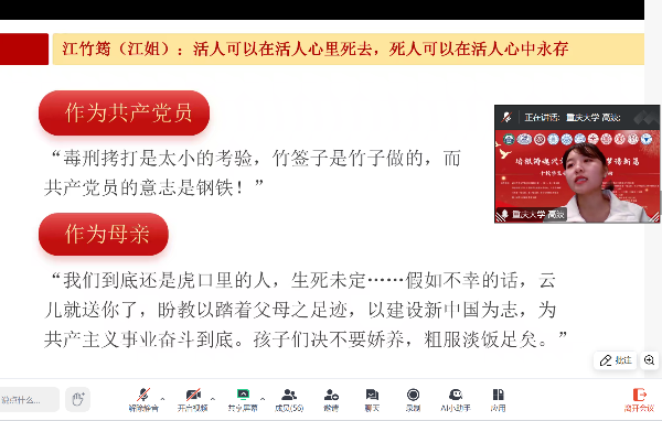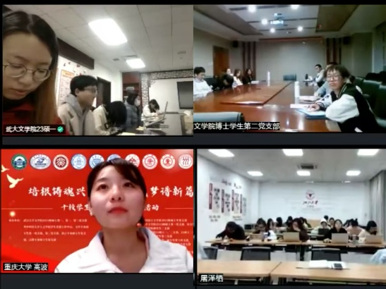 支部联合举办,并且以线上线下相结合的形式顺利开展。参加本次活动宣讲的还有重庆大学博雅学院研究生二支部、武汉大学博士生宣讲团和浙江大学成人在线