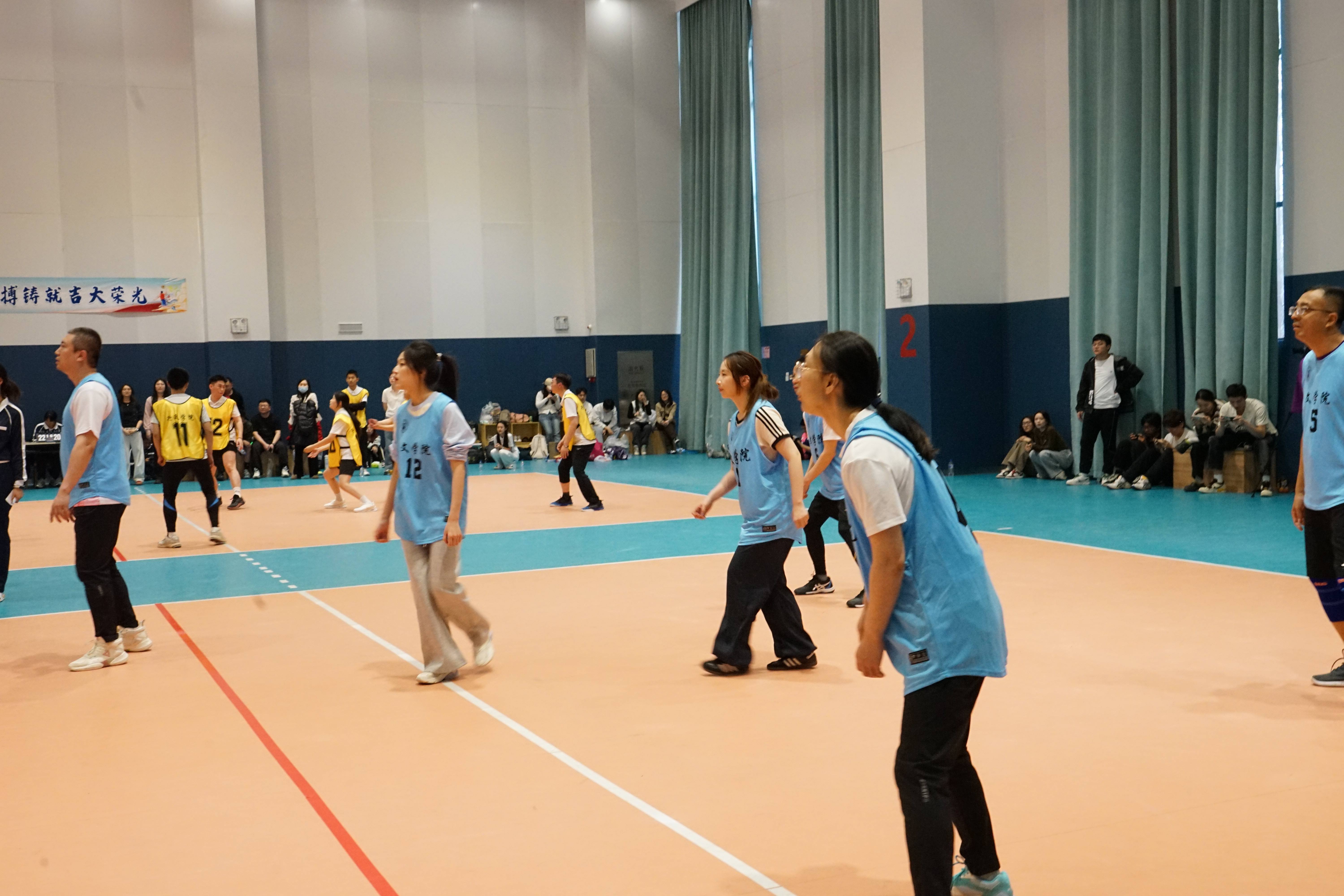 与外国语学院一队的气排球对决在欢呼声中火热开战。哨声响起,成人在线